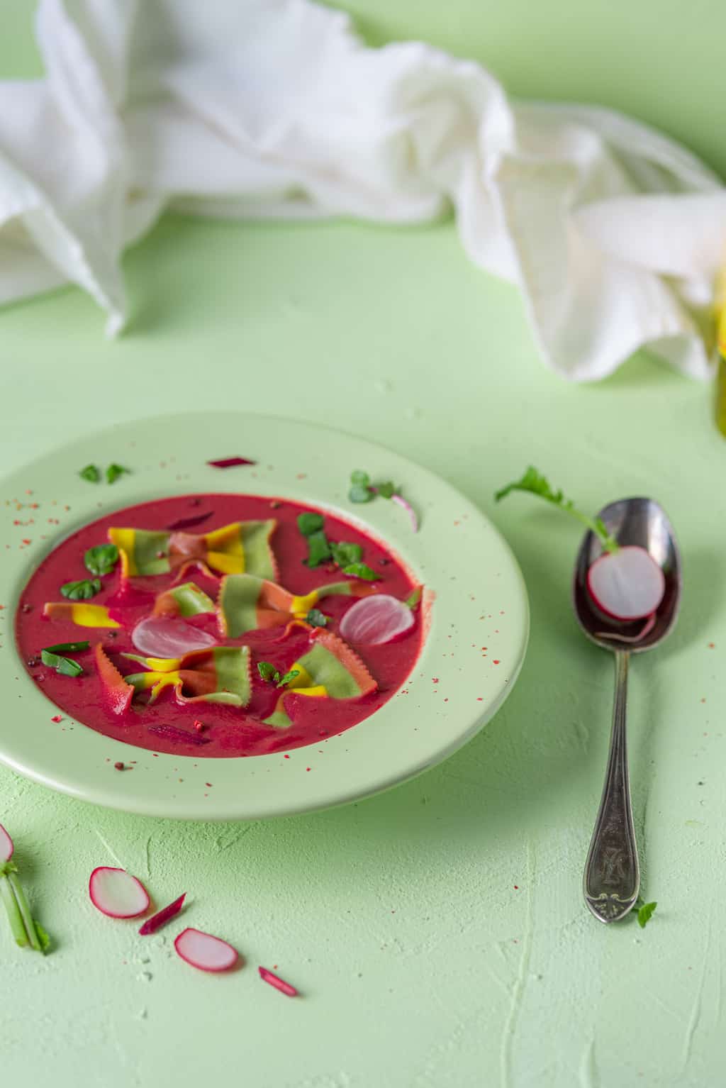 Moja zupa jest dietetyczna i wegańska, smakuje na ciepło jak i na zimno – będzie super w te gorące letnie dni gdy jedyne o czym marzysz to wprowadzić się do lodówki.