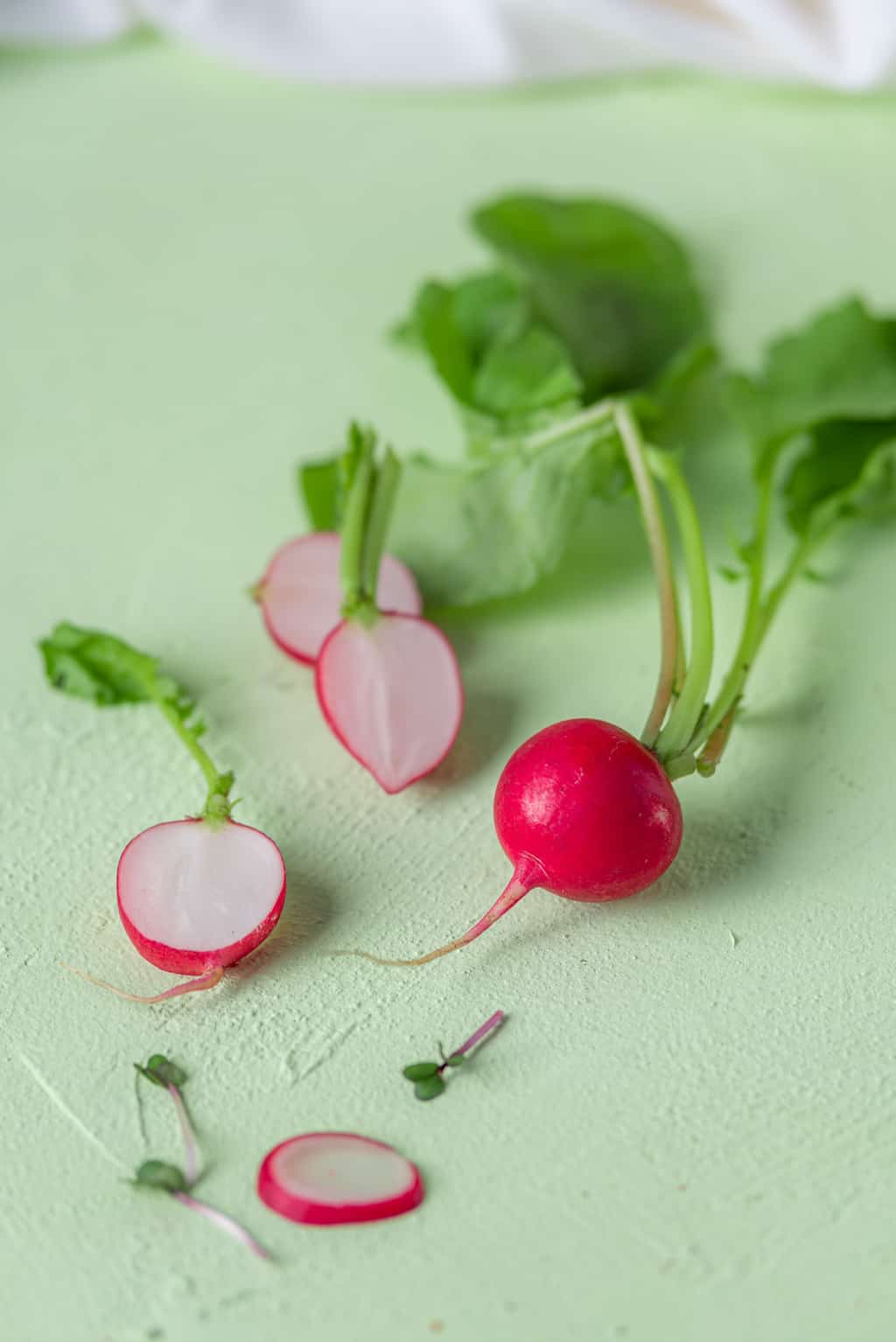 - Dodać pokrojone rzodkiewki (bez liści) i pokrojoną botwinę.