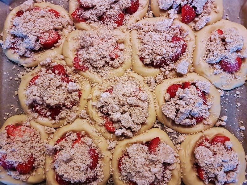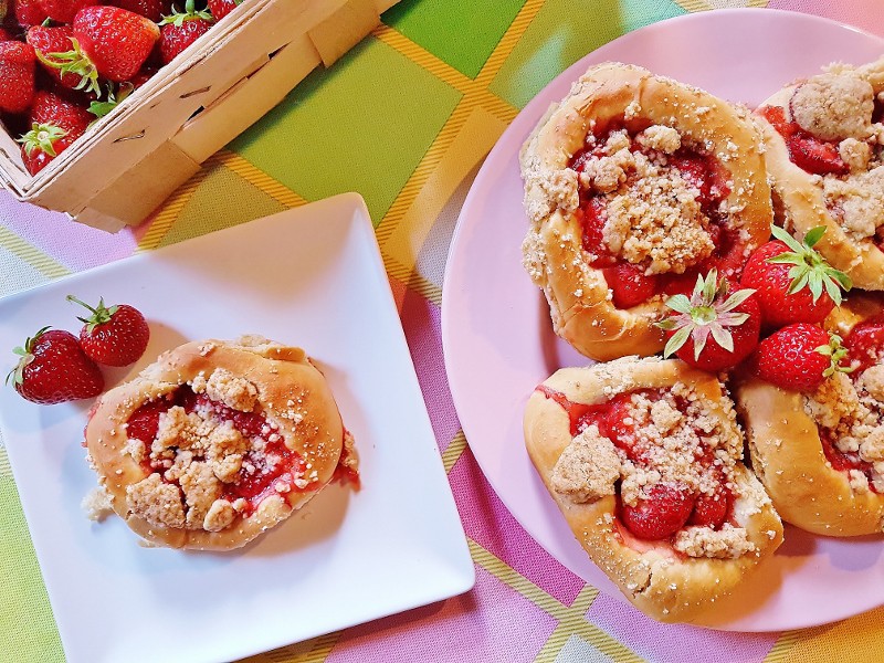 Drożdżówki z truskawkami i kruszonką – przepis na Thermomix