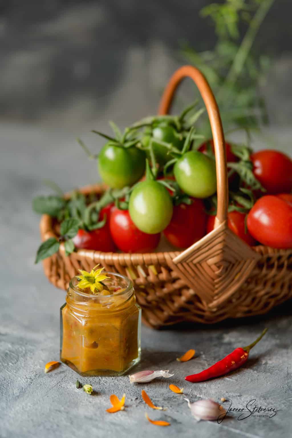 Taki gęsty sos warzywny, z dodatkiem octu i aromatycznych przypraw to inaczej relish, ja jednak wolę go nazywać swojsko sosem. Oczywiście niezależnie od tego czy będziesz go nazywać sosem czy relishem będzie równie pyszny i aromatyczny oraz uspokoi skołatane marnotrastwem sumienie – dopóki nie odkryłam tego przepisu miałam co roku duży problem co zrobić z niedojrzałymi pomidorami.