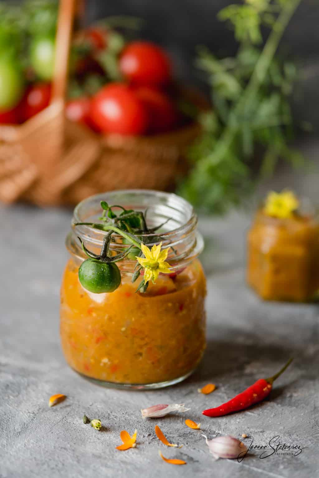 Im bliżej do jesieni tym częściej widzę, że nie wszystkie pomidory na krzaczkach zdążą dojrzeć. Wtedy robię sos z zielonych pomidorów i papryki – doskonale pasuje do dań mięsnych czy do makaronu. Świetnie się przechowuje przez całą zimę. Uwielbiam ten smak i zapach zimą, tak pachnie lato w wersji na słono.