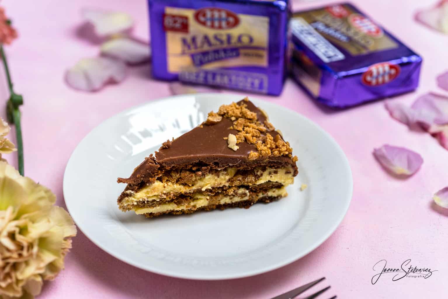 Jest niesamowite w smaku, wielka szkoda, że wychodzi go niewiele – niezbyt wysoki torcik o średnicy 20 centymetrów. Jeśli planujesz częstować nim gości to obawiam się, że może dojść do rękoczynów w trakcie walki o ostatni kawałek.